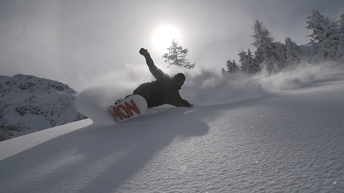 On the real stuff, we see Jamie tear a Cairngorm kicker a new one – his switch backside 180 ranking among the nicest kicker tricks we’ve seen all year – followed by a montage of his globetrotting career so far. Conspicuous by its absence is any footage of his Sochi exploits, with rights issues no doubt denying the film the bold-as-brass cab 1440 that cemented Jamie as the UK’s top freestyle rider. Finally, he ventures to Austria to get out of his comfort zone on a split boarding mission; we’ve heard the trip wasn’t always plain sailing, but under the tutelage of Thomas ‘Beckna’ Eberharter, he bags some quality shots that suggest he could be on to good things in the deeper stuff soon.