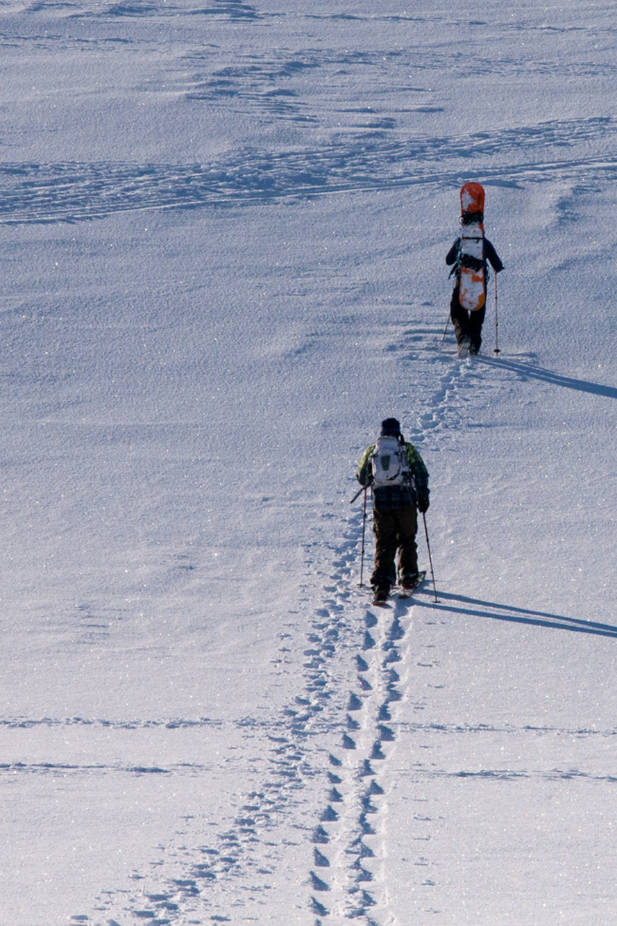 Despite nearly a century’s snowboarding experience among those of us on this one-day course, not one has ever tried splitboarding before. However, as we’re all on the wrong side of 30 with our days of dry slope stunting essentially behind us, we’re pretty much the ideal target audience for what Chris Moran once called “the missing link between cross-country skiing and Ikea cupboard building”.