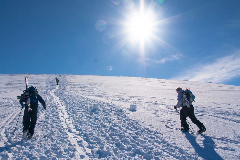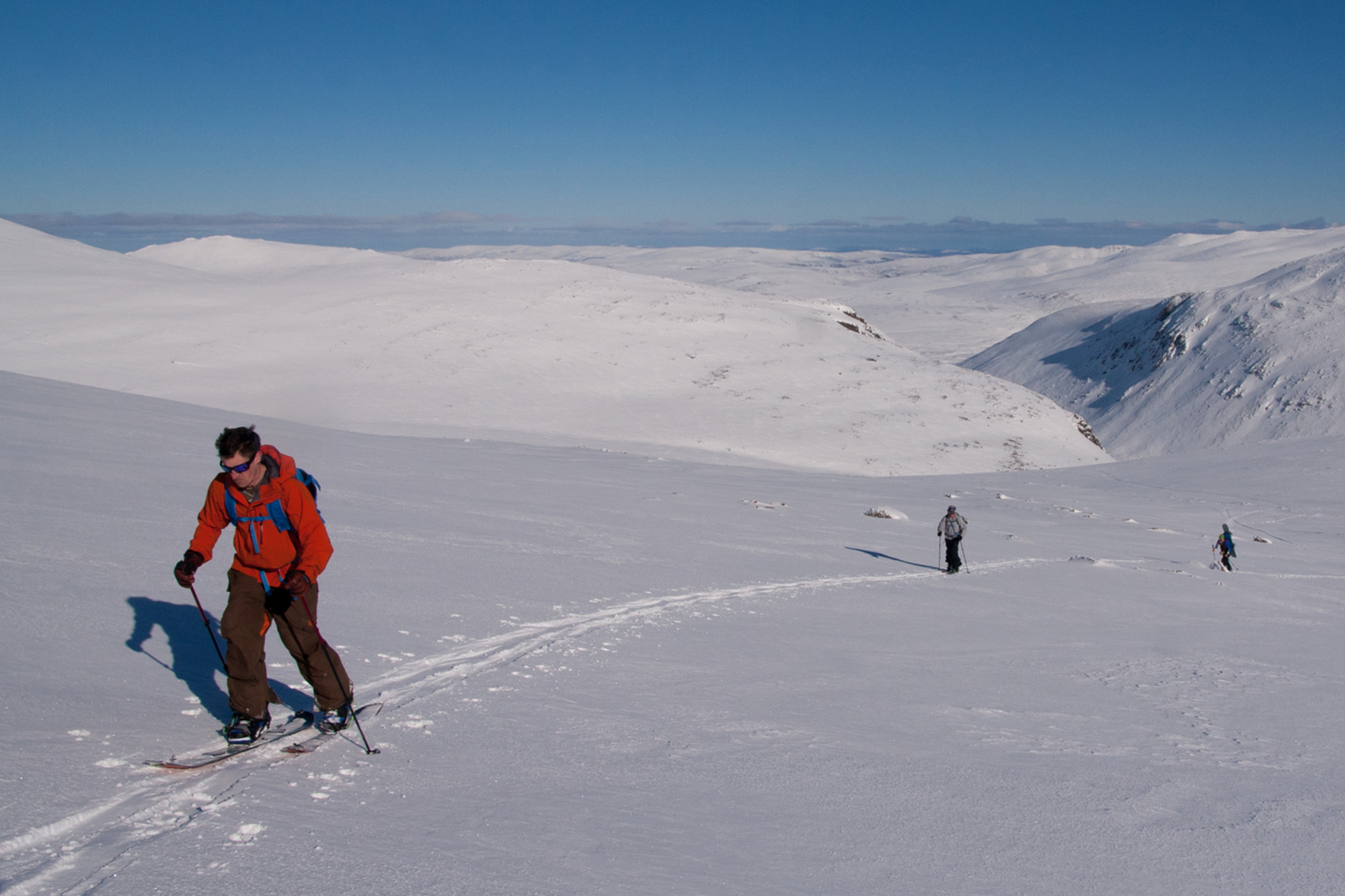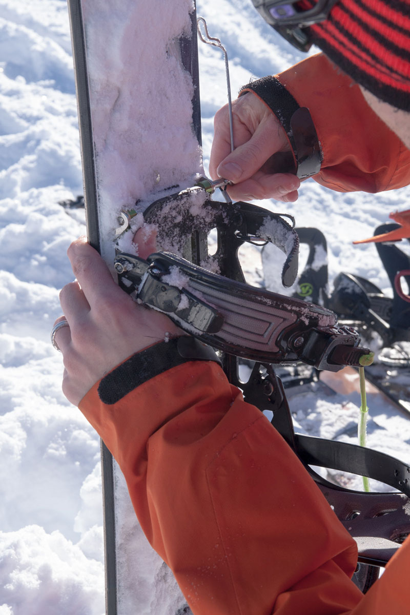 Just as ideal are the conditions; not a cloud in the sky, barely a breath of wind, and plenty of fresh lines still up for grabs in the Cairngorm backcountry. We’re champing at the bit, but there’s plenty to be done before we can hit the hill. Setting up our boards is the obvious first step – a fidgety process, but definitely made easier by having an experienced splitter on hand to point out common mistakes and assist with fine-tuning.
