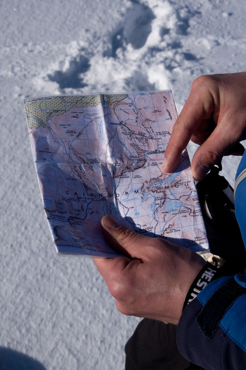 After that’s done, we make a stop at Glenmore Lodge for a brush up on bleeper technique. Their transceiver park has multiple remotely-activated beacons buried in the snow, and searching for them is a great (and free) way to get prepared for the worst-case scenario.