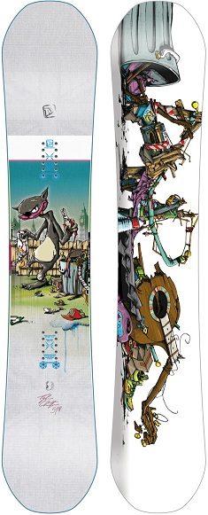 From early on in my pro career I have always had an interest and fortunately an opportunity to design the boards I rode. From the artwork to the technologies and construction techniques, since the days of Burton/Seven/Un Inc., the very essence of my pro models has been about creating a medium that expresses my personality. This is has been very important to me. More recently, having worked with Nidecker Mfg. the past two years on the Volcom board project I became comfortable with their commitment to advancing board technology. All that I have learned has only allowed more room for me to create – this is the platform of SLASH.