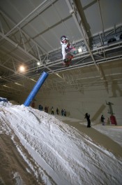 Boys and girls, cool kids and skiers all demonstrated skills that, if needed, could probably pay bills. Jamie Nicholls threw cab and back 270s on with at least a foot of air between him and the rail. Andy ‘Nuddsy’ Nudds was demonstrating his awesome board control sliding from nose to tail with pin-point precision (just one of the impressive array of tricks he was sending). Ross Needham and one ambitious lad nailed the shit out of a backside 270 hard way on 270-out of the gas pipe – you have no business doing that sir (see the video evidence coming soon, it was sick)!