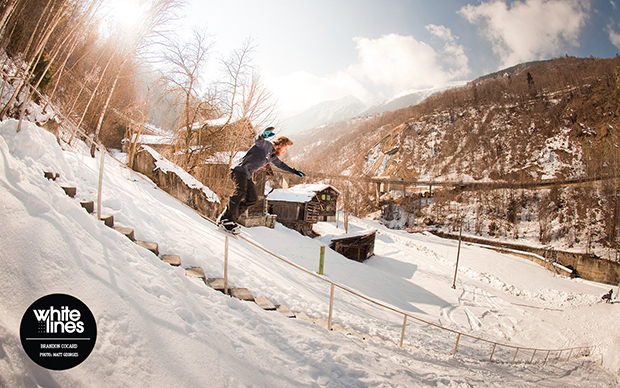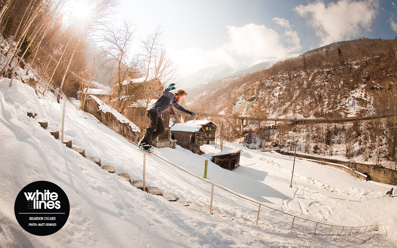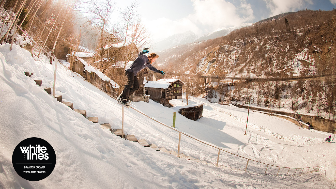 Brandon Cocard attacks the now infamous Valais 68 stair rail in Switzerland with a front lip. It reportedly took him more than two hundred attempts over three days, but he nailed it in the end.