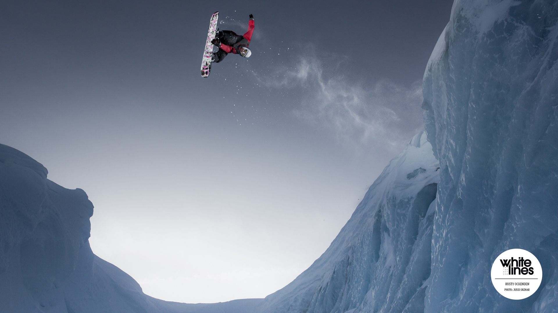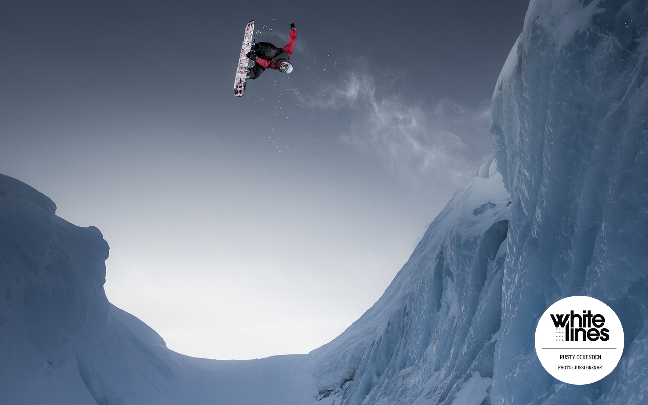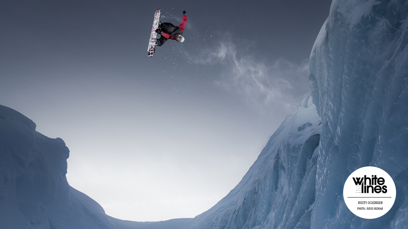 Rusty Ockenden launches over an ice gap in the backcountry of Pemberton, BC.