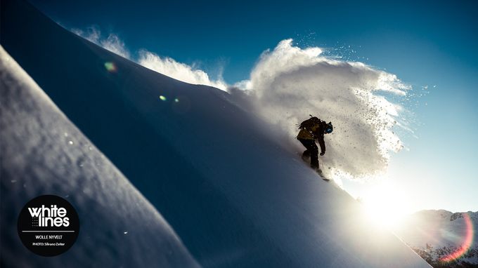 Wolle Nyvelt throws up spray to close out the evening in Corvatsch, Switzerland. Photo by Silvano Zeiter.