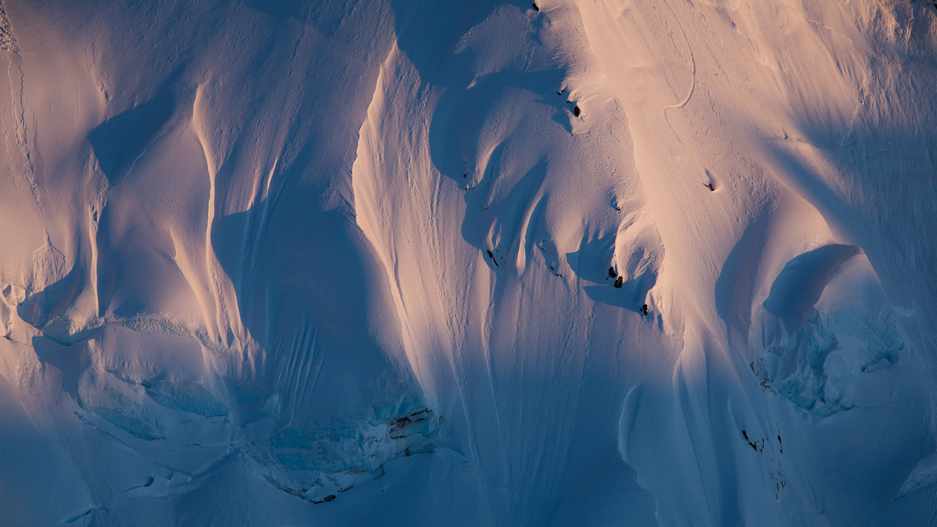 Sun scorched lines leading into the shadows. Xavier De Le Rue heads for a typically steep gap in AK.