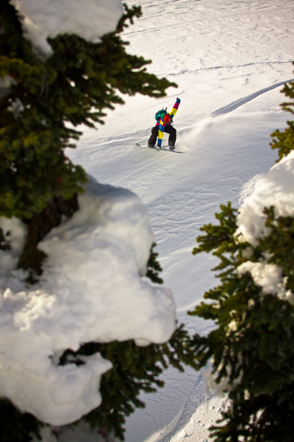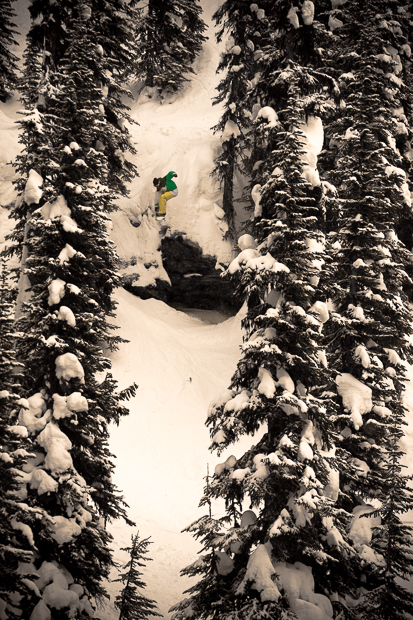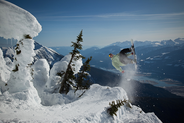 We don’t have much time to soak it all in, though, for the next day we load up the minivan and set out for the quieter surroundings of Revelstoke Mountain Resort. This is the place made famous by Craig Kelly, the former world champion who retired from professional snowboarding to become a guide here, chasing lines in the magnificent local steeps until an avalanche claimed his life in 2003. Back then, Revelstoke was a little–known logging town whose peaks were only accessible by heli. Today, it is developing rapidly into a modern ski area to rival Whistler, with high-speed lifts and luxury holiday apartments. Granted, it is more isolated than Whistler, some six hours inland between Vancouver and Calgary, but the ace up its sleeve is the mountain itself – blessed with massive vertical, serious steeps and of course, crazy amounts of annual snowfall.