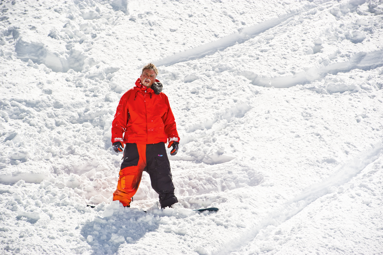 “During early season it’s such a grind I can’t even describe it. Pretty much all day, while you’re awake, you’re working”, he says, the dread registering in his voice. “You sleep when you can, but I sleep for as little amount of time as possible so I can get back out there and snowboard. It sounds crazy to some people but that’s just the way I like to do it. For me, I’m just excited because I love snowboarding”.