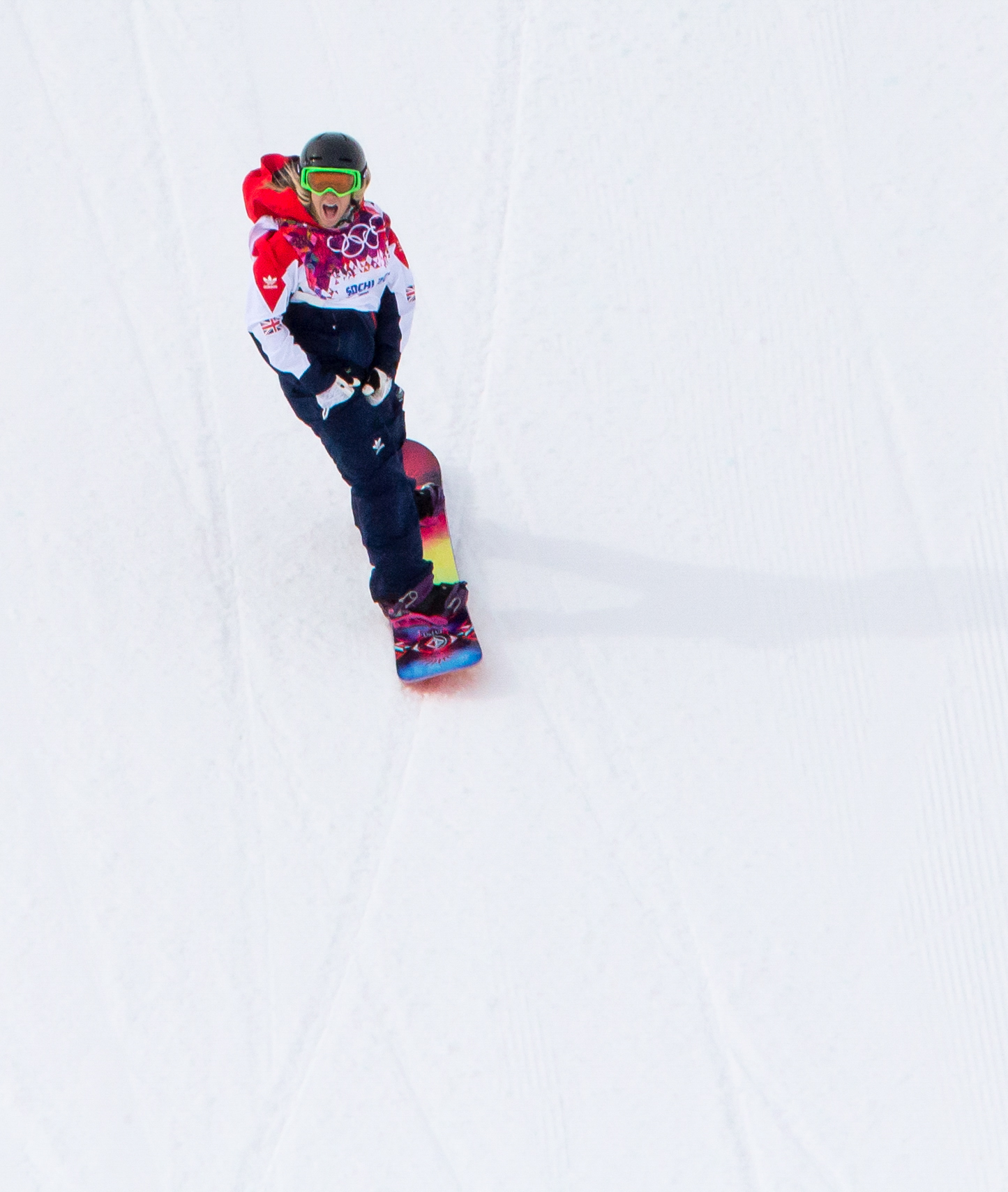 Thus began the long and arduous qualification process for the Games, which would dominate the calendars of all those looking to make it to Russia. After a bumpy start, the turning point came in August 2013 when she finished 2nd (behind eventual Olympic champion Jamie Anderson) at a World Cup event in New Zealand. While this all but booked her place at Sochi, it didn’t rank her among the favourites; at least not from her perspective: “It’s easy to say stuff now. Don’t forget though, I’m over 30 years old. No one had me in their sights! They might say they did now, but they didn’t. And people weren’t thinking about me as someone who would do that well, out of all the British riders and things like that.“
