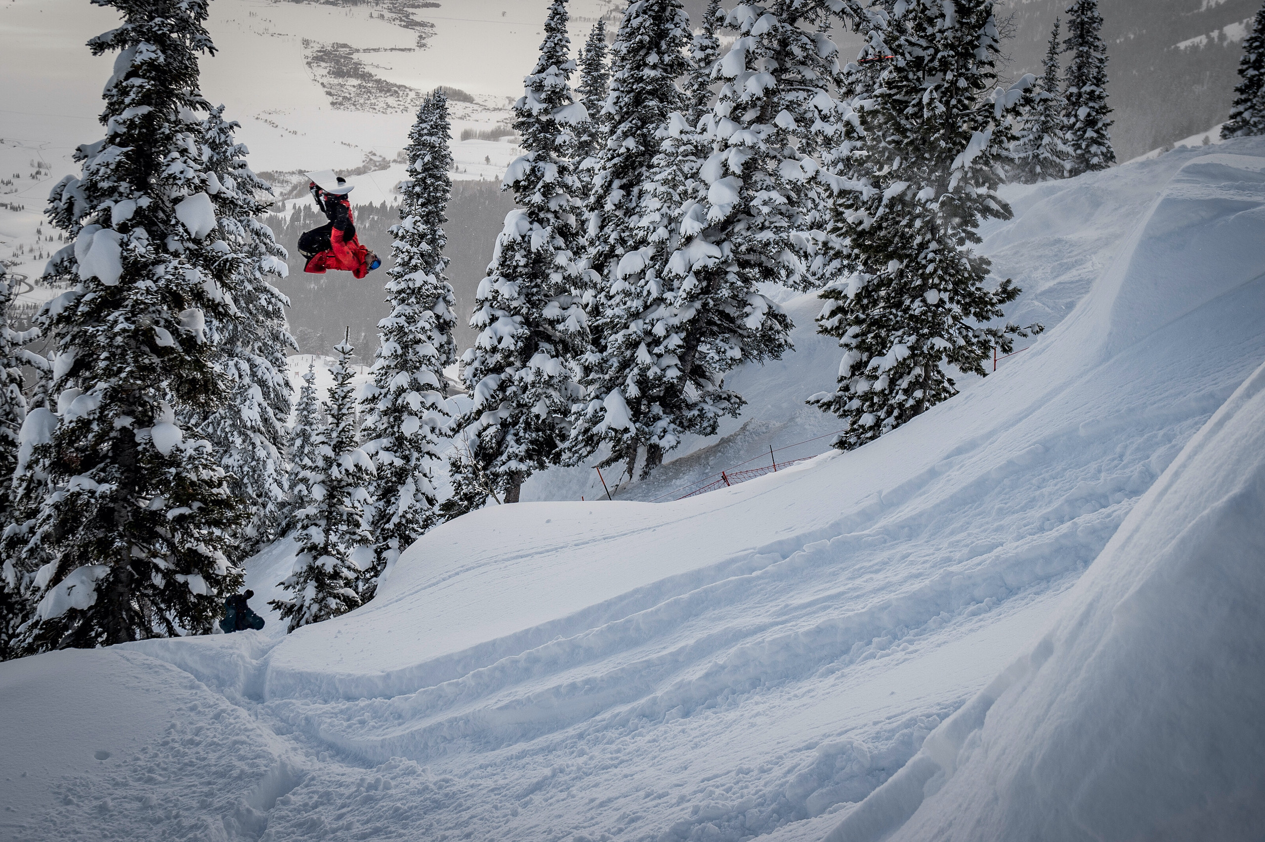 Travis Rice eyes up a landing on the Natural Selection test event course in Jackson Hole, WY, USA on 25 January, 2020. (Credit: T. Bird / Red Bull Content Pool / The Natural Selection Tour)