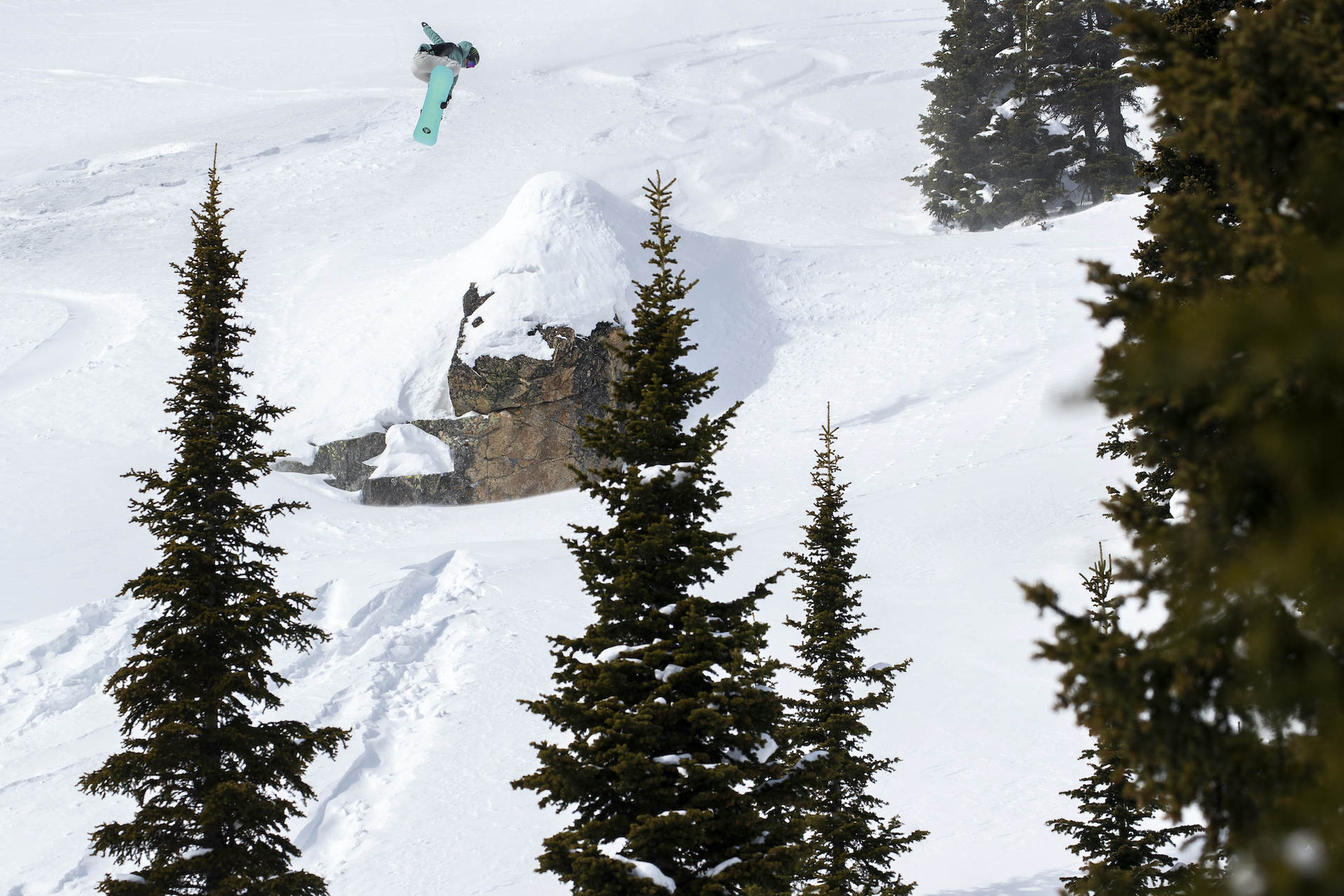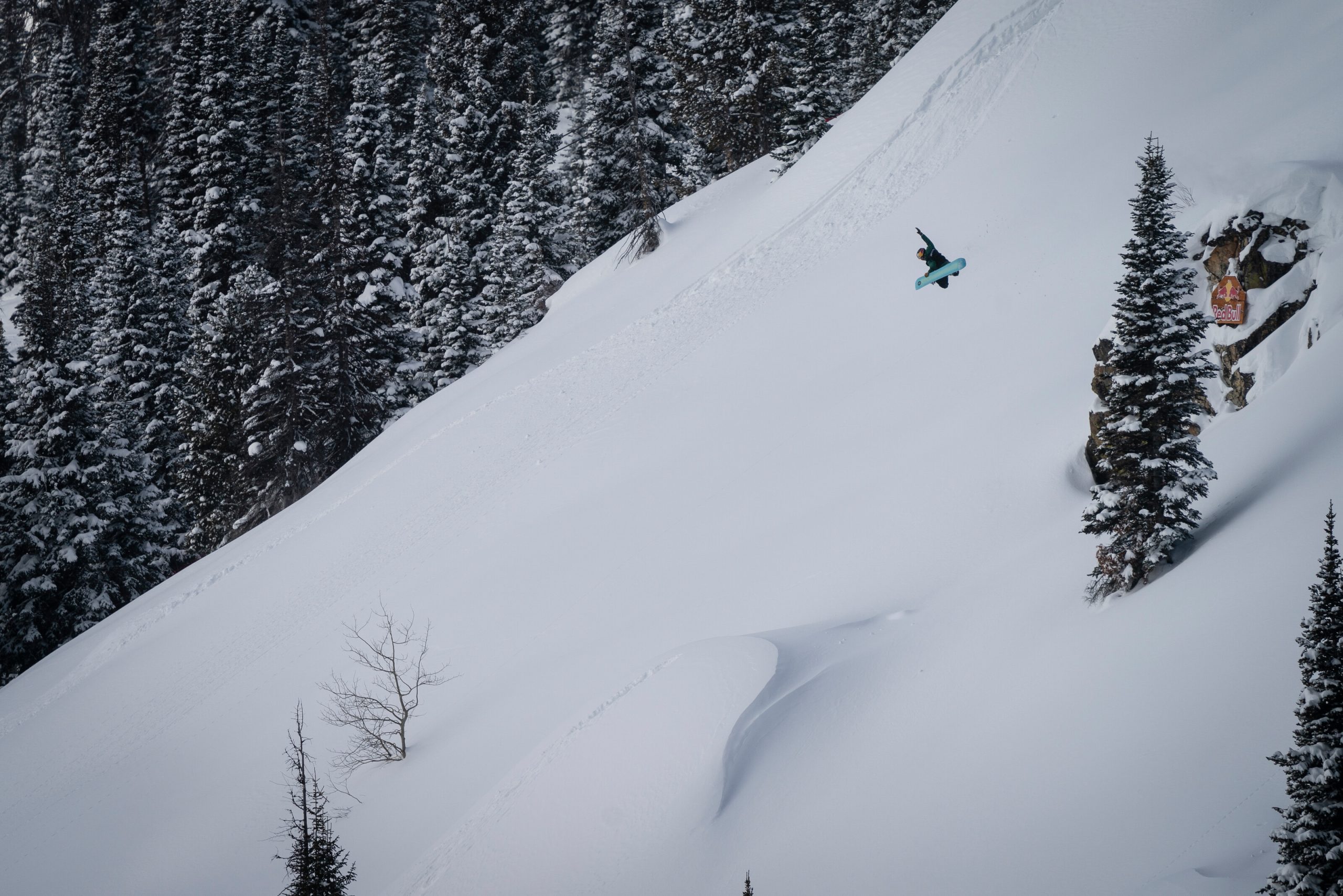 The weeklong waiting period went from the 3rd until the 9th, with competition taking place on the second and last day of the window. In between, Wyoming was hammered with heavy snowfall: four feet in as many days meant visibility was tough for a live broadcast and riding conditions were all-time. With bottomless powder redolent of Hokkaido, competitors banded together in posses and pillaged Jackson Hole’s every nook and craggy cranny.