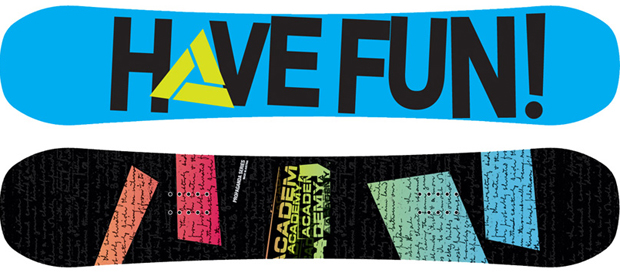 - History lesson: Founded by a crew of riders who “believe in quality first”, Academy has grown slowly overseas, but it rapidly became a household name in the states, with a team that featured the likes of Chad Otterstrom. Right from the beginning the idea has been to support the growth of ordinary riders alongside team shredders. For that reason (and also, probably because it fits neatly with their name) Academy give out a series of scholarships to talented snow lovers each year to help them through college. Nice guys then!