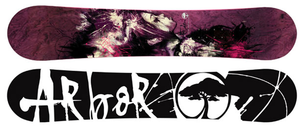 - History lesson: Founded in 1995 by a group of California shred-heads, Arbor set out to be as green as they possibly could right from day one. Of course, this was back when very few people had heard of global warming, and the greenhouse effect was something that happened when you hot-boxed your mate’s Fiesta. Being environmentally friendly wasn’t in vogue (or in Vogue for that matter) like it is now. Arbor, with its green concerns, tree logo and use of natural materials, was originally ridden mostly by hippies. Increasingly though, as green has become more mainstream in snowboarding, the company has started to shed its hippy image and produce some sick jib sticks alongside its surfer-ish powder boards.