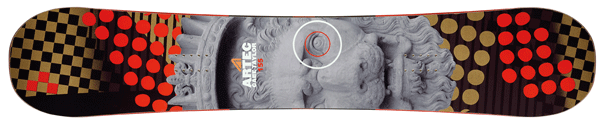 - History lesson: The Artec project started off as an art-focused sub-brand of Elan Snowboards, allowing shredders to submit their own designs and have them printed on specially made boards. The idea was so successful that Artec set up as its own entity shortly afterwards. The company grew quickly, signing up an international team which includes several of the Think Thank crew, like Gus Engle and Nima Jalali.