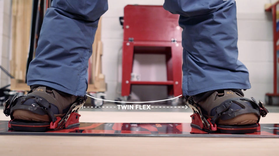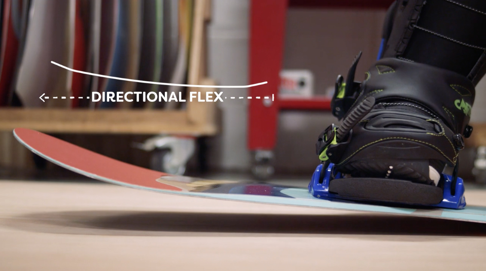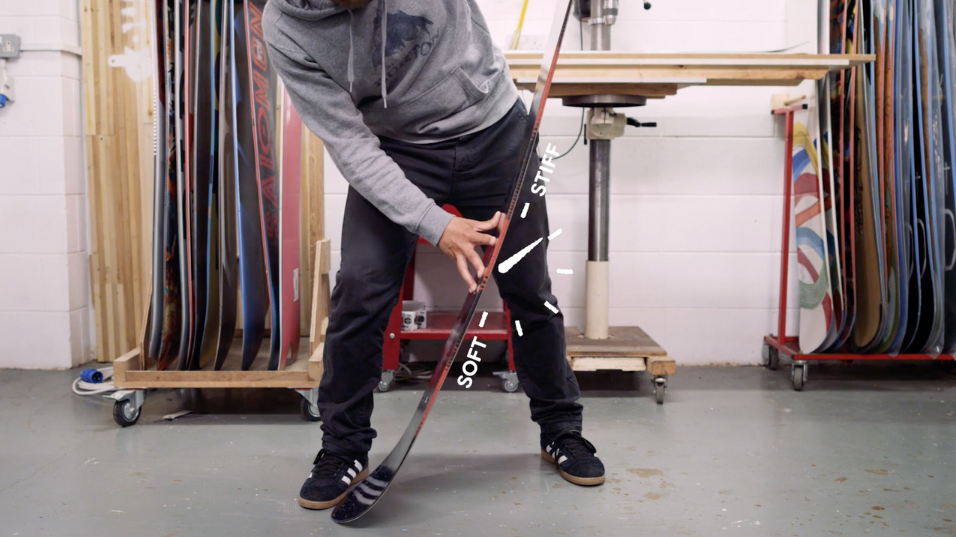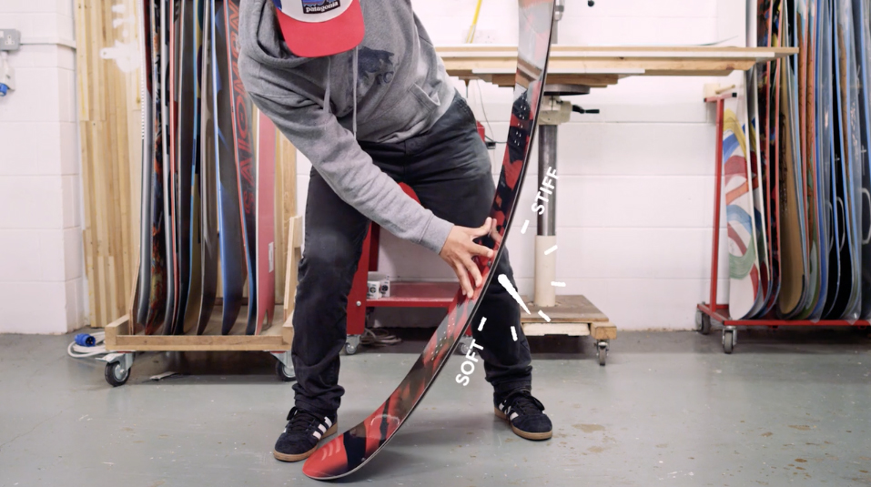 A board’s flex can vary along its length, often stiffer in the tail for better edge hold and snap, but softer towards the nose making it easier to float in powder. This is known as ‘directional flex’. On the contrary, boards designed to ride backwards just as well as forwards will boast ‘twin flex’, which is exactly the same in the nose and tail.
