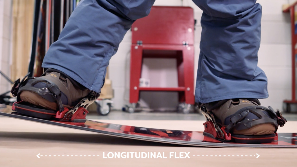 ‘Torsional flex’ is less commonly discussed, and refers to the stiffness of a board from one side to the other (if you were to twist it). However, it does play a role – torsionally stiffer boards will be quicker to transition from edge-to-edge and are better at holding carves, while softer boards are better suited to everyday riding and freestyle.