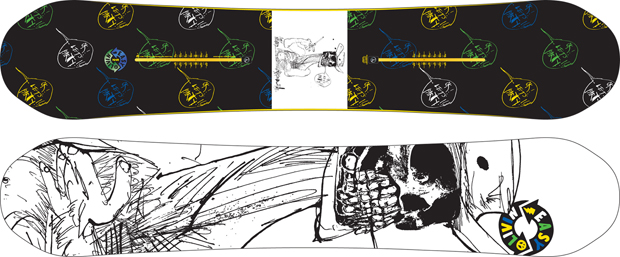 We say: A hippyish looking twin ridden by the bearded Shaun White-slayer Danny Davis. A mellower flex and an easier ride then most pipe boards, but then Danny’s mellower than most pipe riders.