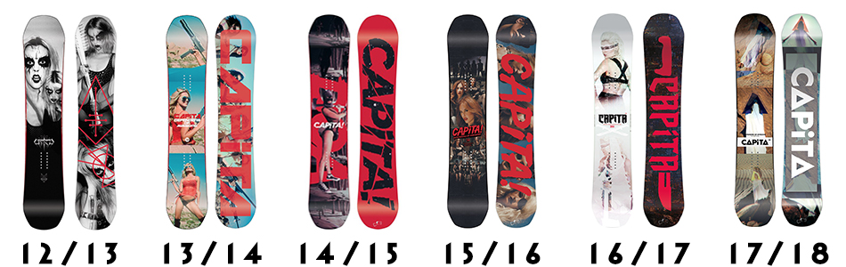 The year after the movie of the same name saw the CAPiTA Defenders Of Awesome board hit the scene, hard. The sticking original graphics were collages of members of the all-girl Scandi black metal band Sorceress, who also released a book entitled ‘Defenders of Awesome in Ancient Scandinavia’, given away for free with every DOA sold. Since then the topsheet ‘babes’ have become less about death metal girl power and more based on exploitation cinema with graphics paying homage to films like Death Proof, Spring Breakers and Planet Terror.