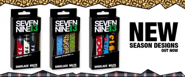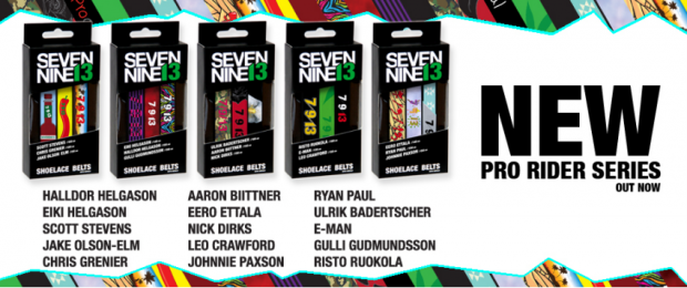 The Helgason fronted shoelace and apparel brand 7/9/13 have recently launched their new line for 2012/2013 which includes five new pro-model packs as well as three ‘new season’ design packs. Each pro model pack contains three lace belts designed by each of the riders in the ridiculously solid team of Halldor Helgason, Eiki Helgason, Scott Stevens, Jake Olson-Elm, Chris Grenier, Aaron Biittner, Eero Ettala, Nick Dirks, Leo Crawford, Johnnie Paxson, Ryan Paul, Ulrik Badertscher, E-Man Anderson, Gulli Gudmundsson and Risto Ruokola. From Eero’s ‘Hamburger and Fries’ belt to Aaron Biittner’s ‘Black Roses,’ there are some pretty rad designs on these things. Some of our personal favourites are Risto’s ‘I just love the taste of yellow snow’ belt and Scott Stevens’ chilli sauce inspired number. No more falling onto a big bulky belt buckle and giving yourself internal bleeding!