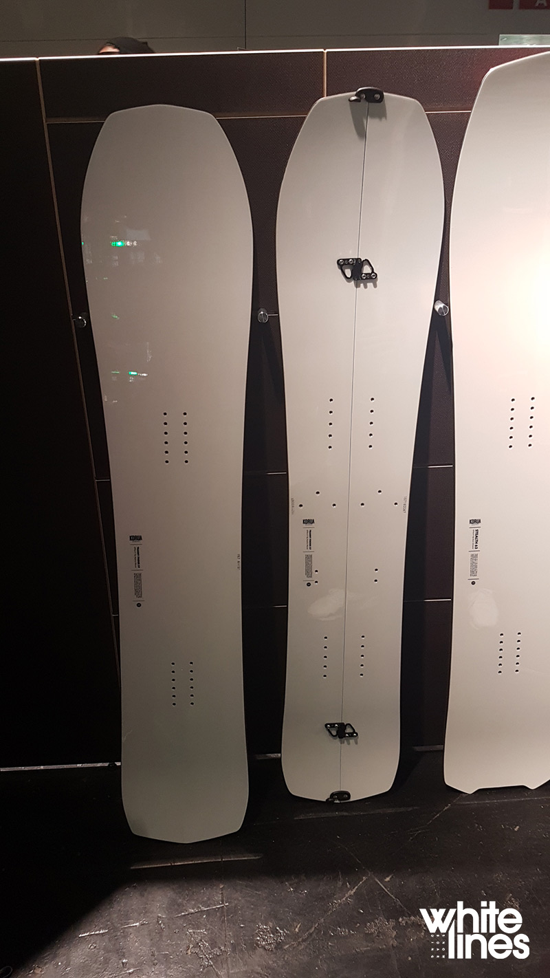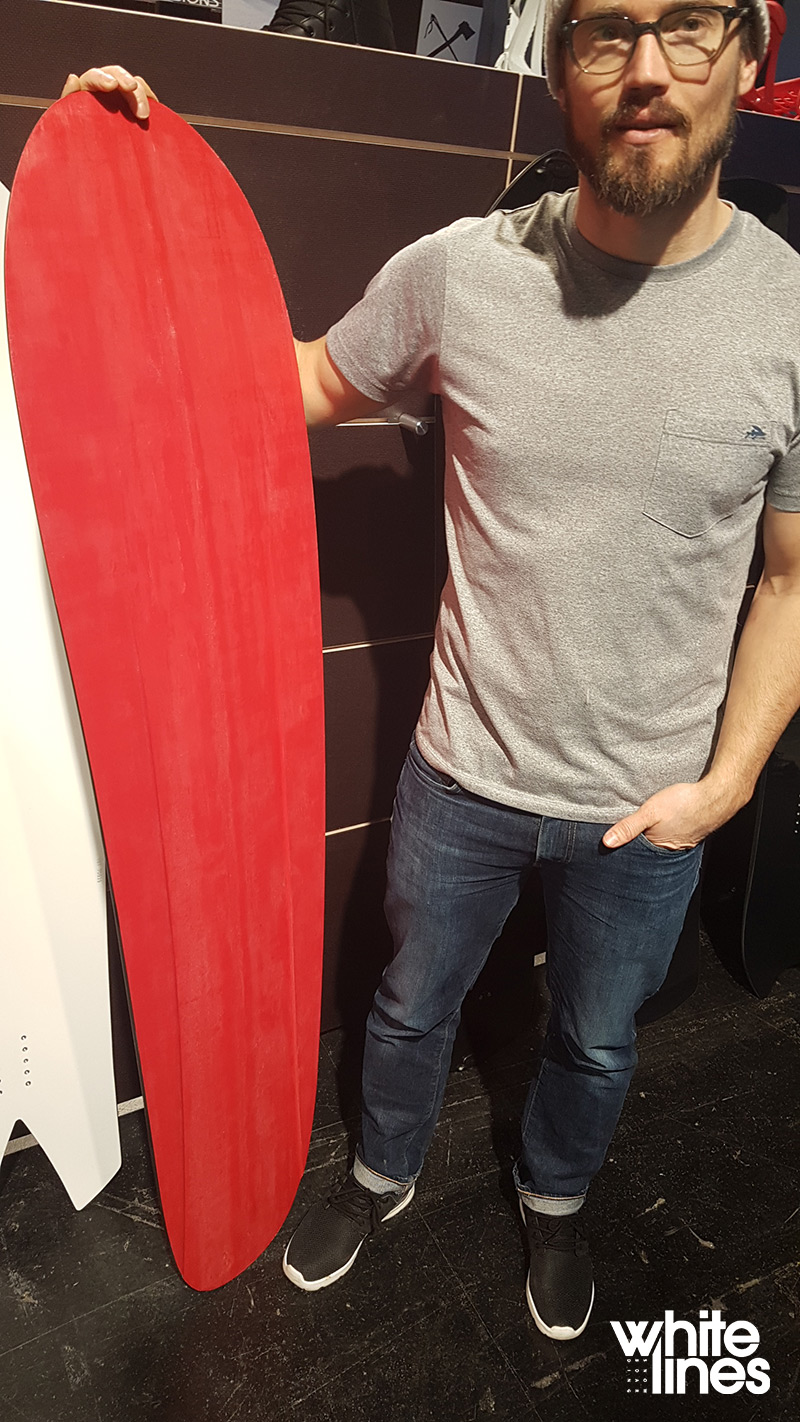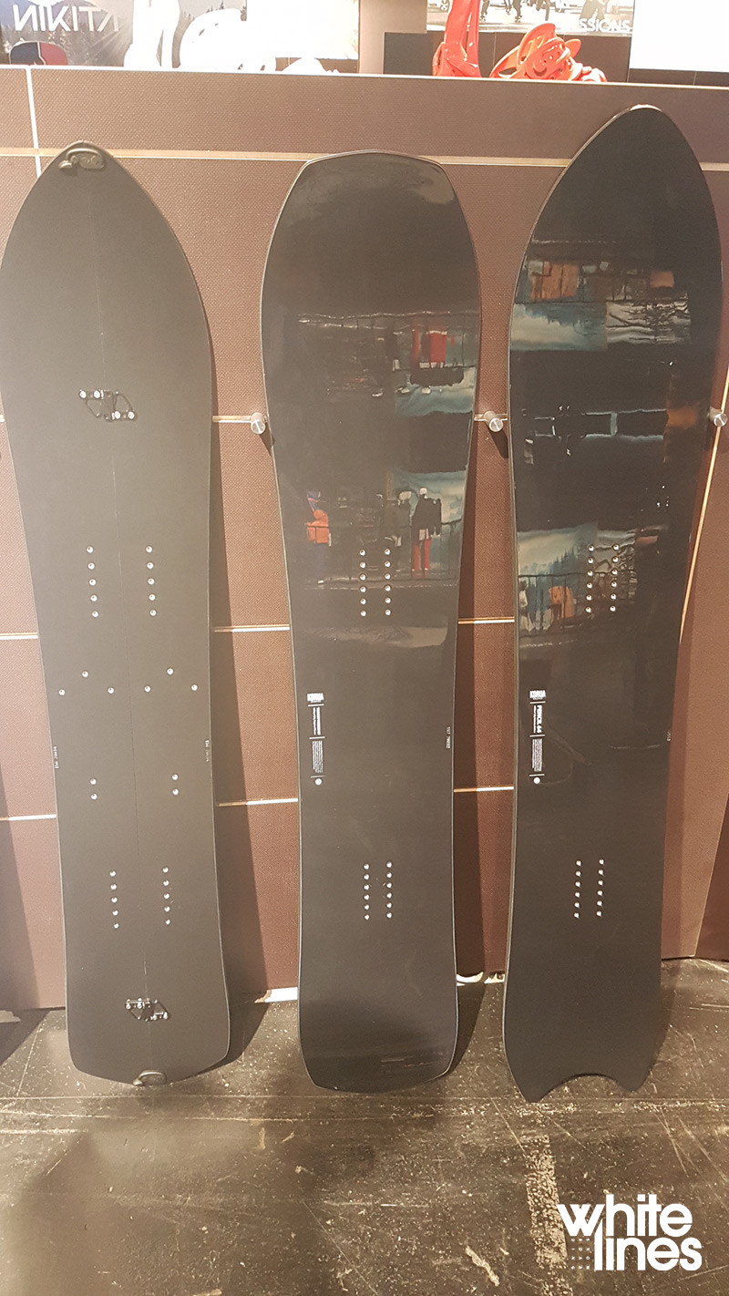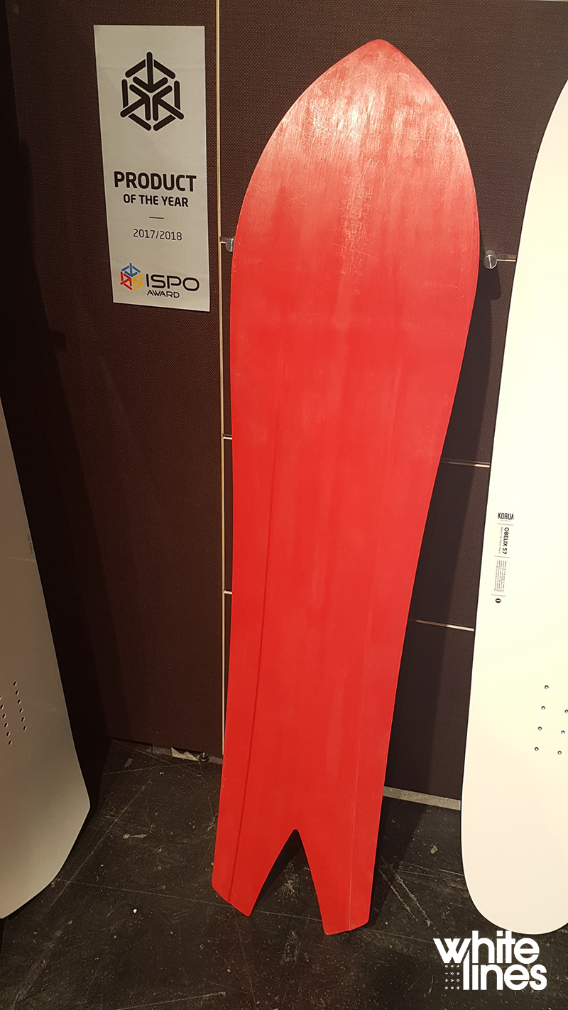 Then come two completely new concepts, both in shape and construction – the Obelix and the ISPO 2017 award winning Tugboat. Both are fresh short-wide shapes with zero metal edges in sight – and while we can’t yet say how these feel in deep snow, what you’ll see in the shots below is that they’re equipped with base channels to help give traction while you float through a river of the white stuff.