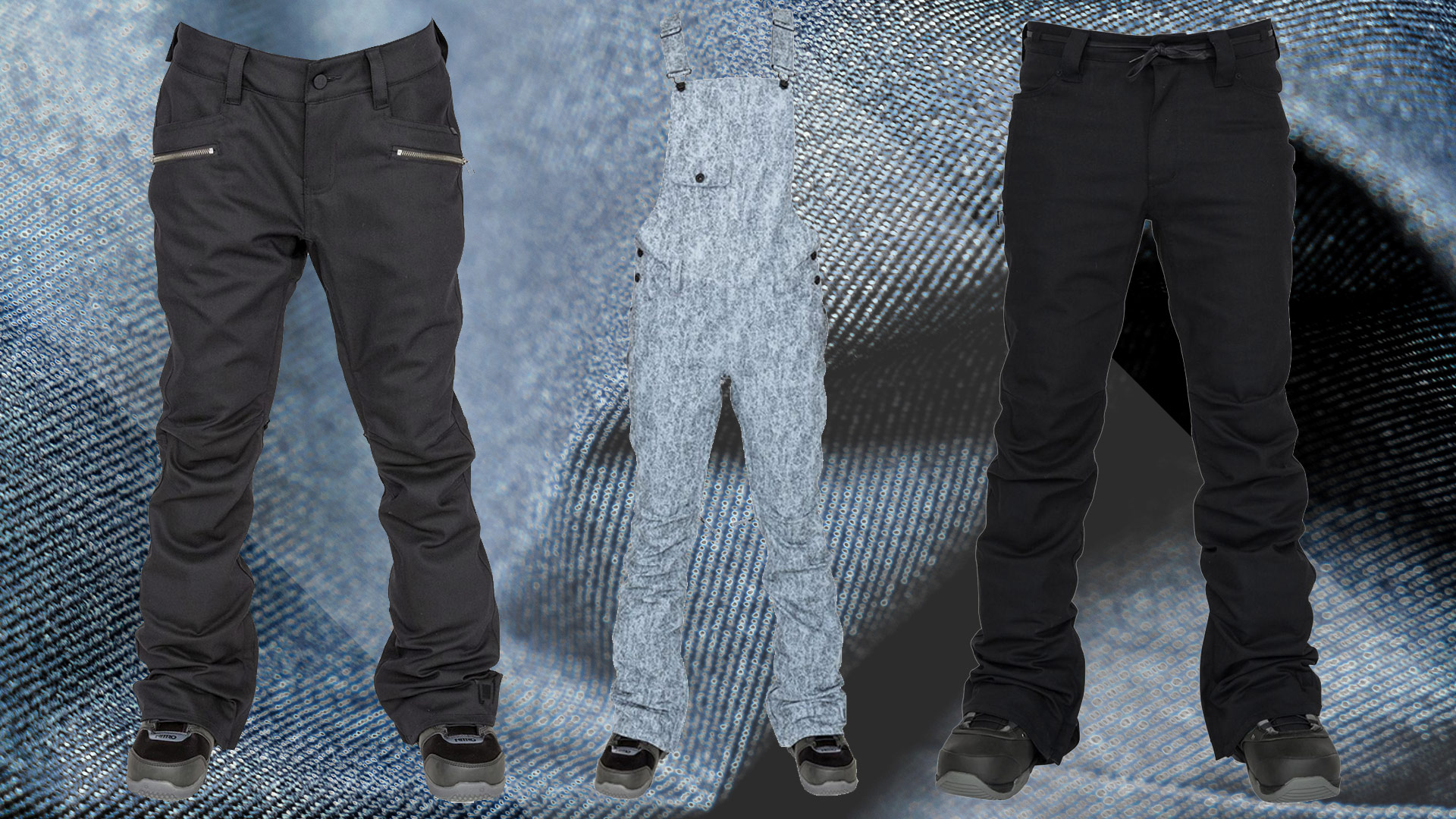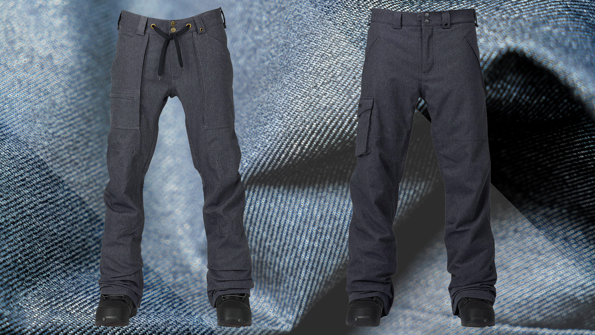 Denim style snowboard pants (and fully impractical, water absorbing jeans) continue to prove popular right across the snowboarding spectrum – and of course companies carry on providing as many variations on the theme as there are cuts of the original workwear classic.