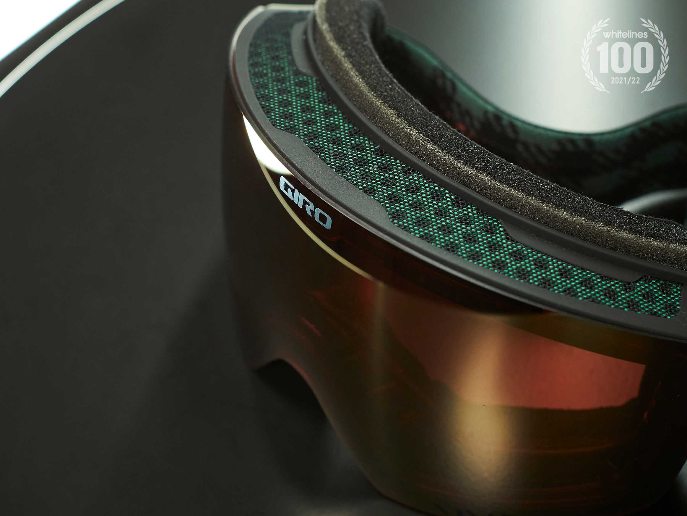 At first glance, you’d be forgiven for assuming these goggles don’t offer quite the same field of view as some of the bug-eyed, fighter-pilot-esque competition. Don’t be fooled, though – peripheral vision is dictated primarily by the profile of the frame, rather than the shape of the lens, and the Contour RS combines a sleek, frameless design with Giro’s state-of-the-art Expansion View Technology+. With a semi-spherical lens (sometimes known as toric), these goggles have a much lower profile that sits closer to the face. The vertical axis of the lens appears very shallow, but the curve along the horizontal axis is what enables that wider field of view, without any distortion in the corner.