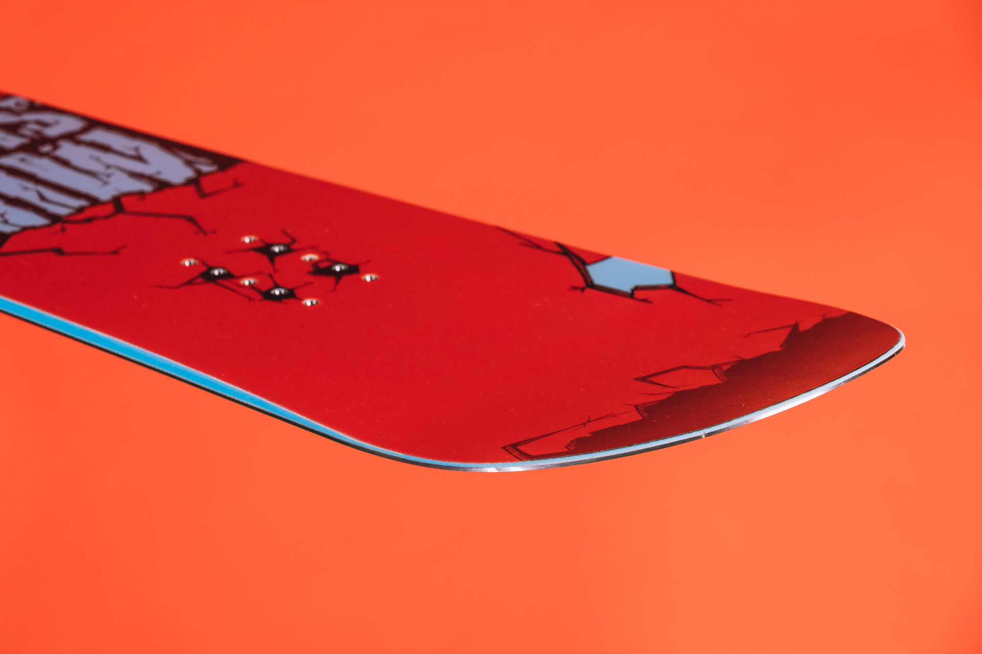 The profile on the Rome Mini Shred is pretty techy compared to most kids’ steeds. Designed specifically to make life easier for those still learning, it features a flat area in the middle of the board that extends out towards the nose and tail in a rough ‘diamond’ shape. Then the rest of the base is slightly raised up as you move out towards the edge.