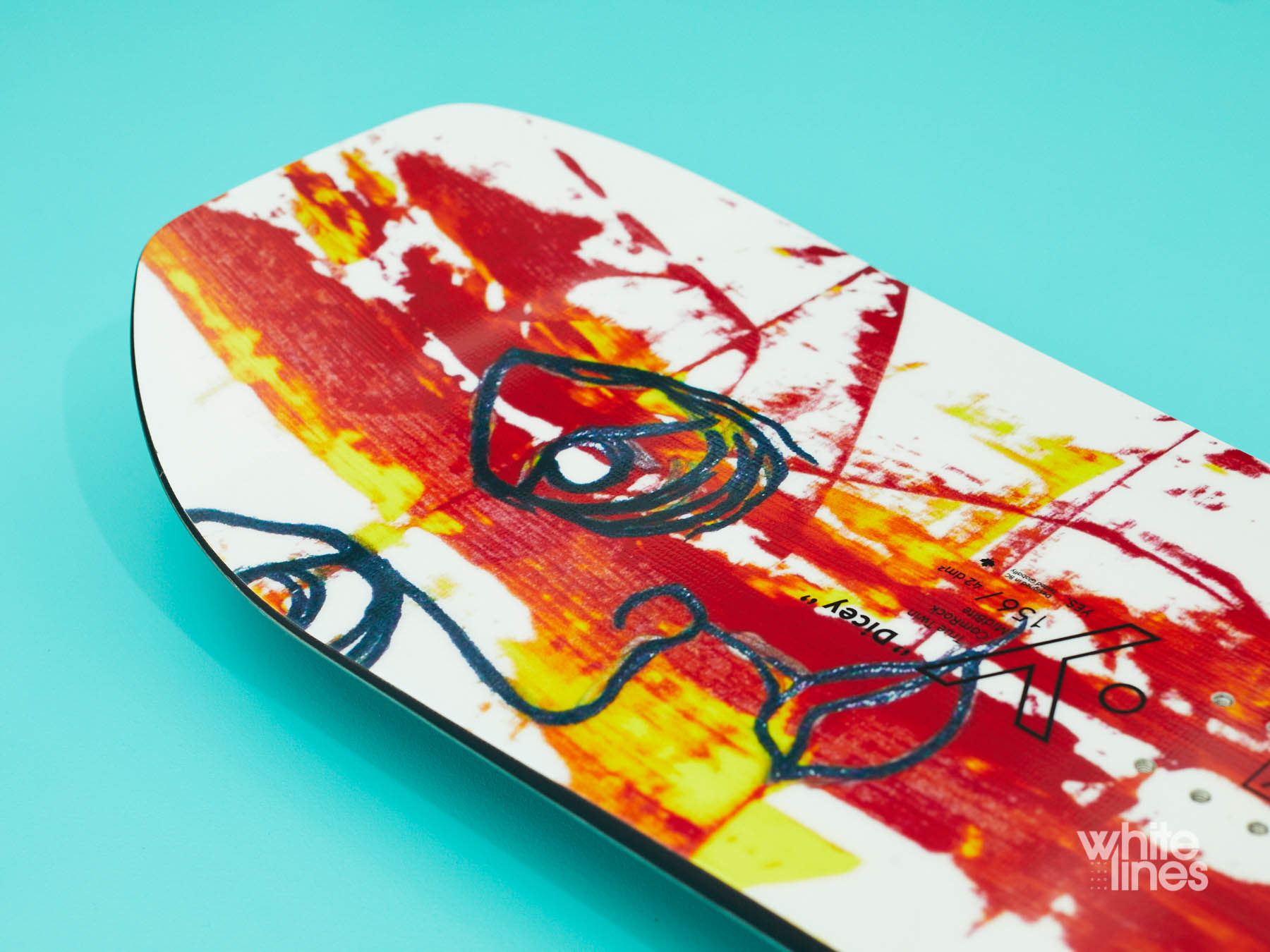 As with the Jackpot, the Dicey benefits from YES’s amazing MidBite sidecut, which pulls in the edge through the middle section of the board to make it behave more like a narrower model (as in, rapid edge to edge). At the same time the nose and tail offer a stable platform to tackle any feature in the park and beyond.