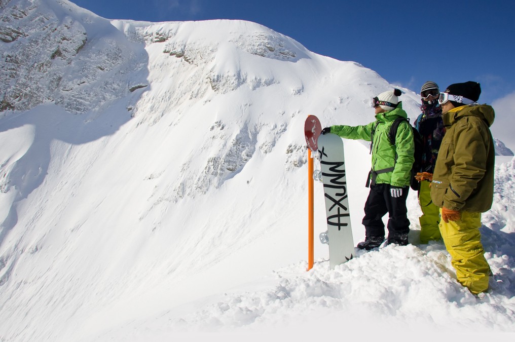 One-at-a-timeThe most common cause of slab release is external loading. When you make a turn in fresh snow you can exert up to six times your body weight on the snowpack. If two riders are descending at once, this pressure-loading is doubled (and probably spread out onto more of the snowpack due to you taking slightly different lines). If you’re venturing onto a slope that has an element of avalanche risk (i.e. it is the right angle, rolling, unsupported or untracked) treat it as unstable and take the precaution of riding one at a time.