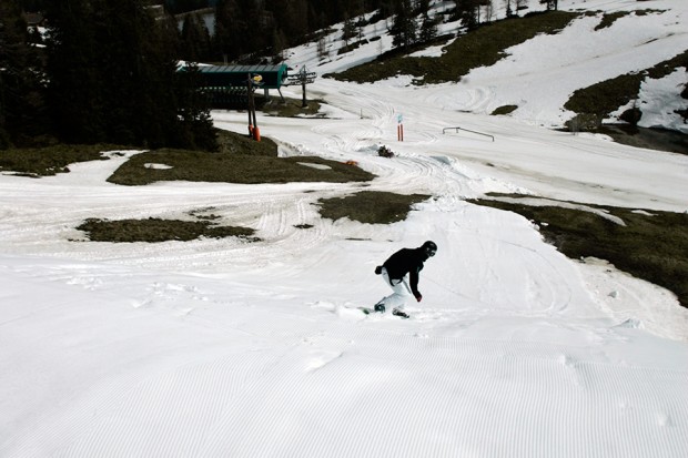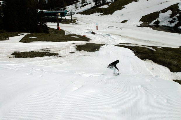 6. Let go of the grab. If you’ve judged it correctly, you should keep spinning smoothly until the board touches the snow in a perfectly straight line. The reality is often a little different, of course. If it looks like you’re about to over-rotate (i.e. go around more than a 360) then you can open up – spread your arms and extend your legs – which should slow the spin down. Conversely, if you’ve not got enough spin and it looks like you’ll land horizontally at around 270 degrees, then keep your knees sucked up and bring your arms in to speed up the rotation and buy yourself a few more degrees before landing.