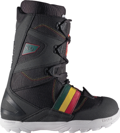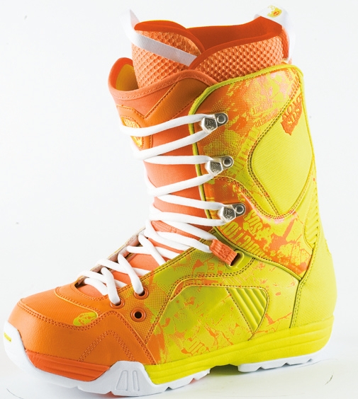 we say: …and he stuck a rasta three-stripe down the side. If you like your boots to come with an easy-going reggae vibe and a softish flex, then take a look at this. It’s not as tech as some boots, but for jibbers, park rats, casual cruisers and Bob Marley, it’s ideal.