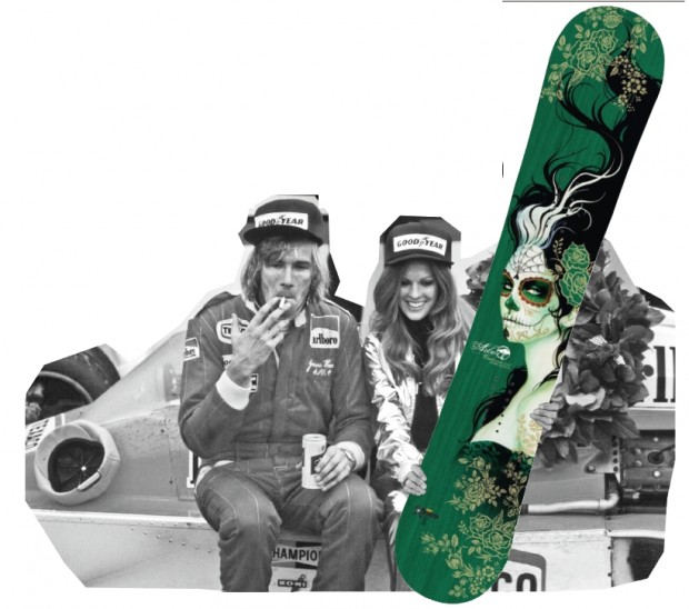 Forum’s Contract is another new addition to their range this year, but there’s going to be a lot of grungy jib kids out there who wish they’d come up with this before. Instead of being rockered like a lot of jib boards, the Contract features Forum’s ‘Pop Camber’ profile – basically it’s a low camber with ‘pop zones’ just inside the contact points at the nose and tail making it easier to pop an ollie or hold a nose press down a rail than on a conventional camber stick. OK, so rocker riders might not feel as instantly at home when buffering or pressing, but then this has all the advantages of camber to it as well – namely better pop and edge control. It’s got a durable ‘Bad Ass’ core, and a tough-as-nails extruded base. Plus it’s got one of the sweetest most recognizable graphics anywhere – c’mon, who doesn’t like sex, drugs and rock n’ roll? Read what our testers thought of this and other in our jib snowboard guide.