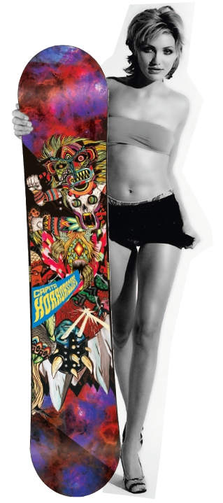 Every year around tradeshow time, there are a handful of boards that get tongues wagging, eyes popping and camera shutt­ers clicking. Industry types will ba­le their way across crowded exhibition centres to get a good look at them, riders and shop-monkeys will fight each other for a chance to try them out at the Board Test, and online chat rooms will crash under the weight of people sharing photos and swapping rumours. It’s not that these boards are necessarily bett­er built or easier to ride than others, they just a­ttract more attention. For whatever reason, whether it’s their new tech, crazy graphics, or their backing by a particular pro, these are the boards that are creating a buzz this winter.