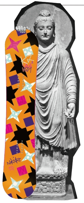 With a name that sounds like it was inspired by Bill and Ted’s Excellent Adventure (and graphics that look like the result of a trip in Rufus’ time machine) these boards were alwaysgoing to appeal to a certain type of shredder. But look under the topsheet of the Great Dudes of History and you’ll find a surprising amount of tech – enough to fill most stoners’ miniscule memory banks at least twice over. Behind the faces of Haile Selassie, John Lennon, JFK, Abe Lincoln, Einstein and Martin Luther King lies a Nidecker-designed Cam Rock combo core, with camber between the bindings and rocker at the tip and tail. This, combined with the relatively stiff fl ex, makes the board poppy in the park and floaty in powder. It’s probably a bit stiff for beginners, but then you really have to earn the right to step on the faces of dudes this great anyway. Read what our testers thought of this and other in our all mountain snowboard guide.